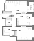 58.3 м2 16 этаж