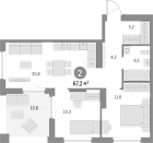 В жилом комплексе представлено множество планировочных решений: от студий до просторных 3-х комнатных квартир европейского формата, также в наличии представлены планировки с террасами, двухуровневые лоты и квартиры с отдельным входом. Сдаются они с увеличенными и панорамными окнами, подчистовой отделкой и высотой потолков до 3,3 метров.