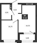 34.55 м2 14 этаж
