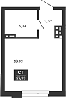 27.37 м2 14 этаж