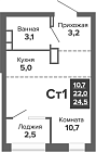 В проекте предлагаются студии и квартиры с 1–3 спальнями в европланировках. В помещениях установлены увеличенные окна, высота потолков составляет 2,7 м. Жилье передается с чистовой отделкой: обои под покраску, ламинат 32 класса, окна с двойным стеклопакетом, радиаторы и счетчики.