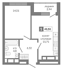 41.06 м2 16 этаж