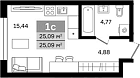 25.09 м2 20 этаж