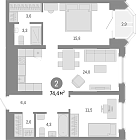 Жилая 34.7 м2
