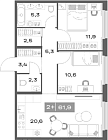 61.9 м2 3 этаж