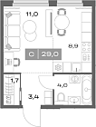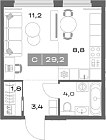 29.2 м2 4 этаж