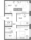 62.1 м2 3 этаж
