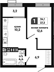 34.1 м2 9 этаж