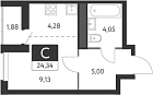 22.75 м2 24 этаж