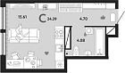 24.39 м2 25 этаж