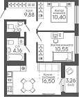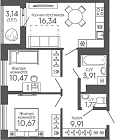 53.59 м2 16 этаж