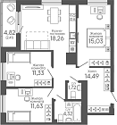 53.02 м2 15 этаж
