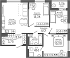 54.32 м2 13 этаж