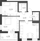 59.35 м2 15 этаж
