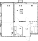 54.72 м2 11 этаж