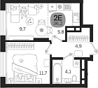 42.52 м2 21 этаж