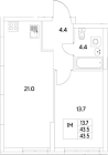 43.5 м2 4 этаж