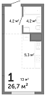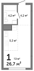 26.2 м2 27 этаж