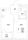 39.96 м2 14 этаж