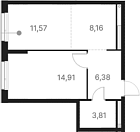 38.19 м2 16 этаж