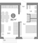 37.7 м2 18 этаж