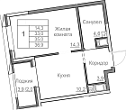 41.8 м2 14 этаж