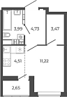 Жилая 22.2 м2