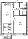 34.9 м2 10 этаж