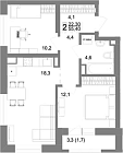 53.7 м2 16 этаж