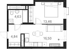 36.54 м2 16 этаж
