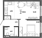 37.33 м2 2 этаж