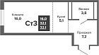 32.61 м2 11 этаж