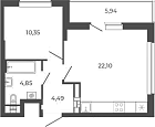 Жилая 22.2 м2