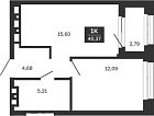 Кухня 15.6 м2 Жилая 12.09 м2 Балкон: да
