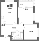 Кухня 18.67 м2 Жилая 23.65 м2 Балкон: да