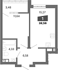 Кухня 15.27 м2 Жилая 11.64 м2 Балкон: да