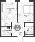 Кухня 13.5 м2 Жилая 11.9 м2 Балкон: нет