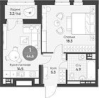 Кухня 14.5 м2 Жилая 18.3 м2 Балкон: да
