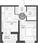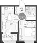 Кухня 12.9 м2 Жилая 10.8 м2 Балкон: да