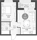 Кухня 17.3 м2 Жилая 20.8 м2 Балкон: да