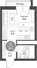 Квартира студия 24.7 м2