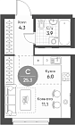 Квартира студия 25.3 м2