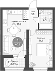 Кухня 16.8 м2 Жилая 14.1 м2 Балкон: да