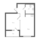 Кухня 15.6 м2 Жилая 11.4 м2 Балкон: да