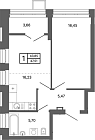 Кухня 16.23 м2 Жилая 16.45 м2 Балкон: да