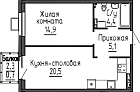 Кухня 20.5 м2 Жилая 14.9 м2 Балкон: да