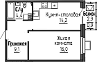 Однокомнатная квартира 43.3 м2