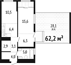 Кухня 17.2 м2 Жилая 24.6 м2 Балкон: да