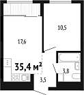 Кухня 17.6 м2 Жилая 10.5 м2 Балкон: нет