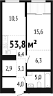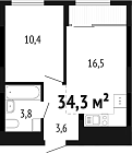 Кухня 16.5 м2 Жилая 10.4 м2 Балкон: нет